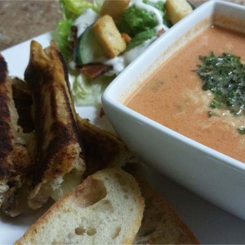 Crock-Pot Thursday Lunch: Tomato Basil Bisque, Grilled Cheese Bacon Sandwiches on White Bread. Side Salad w/ Choice of Dressing and Apple Peanut Butter Cookies