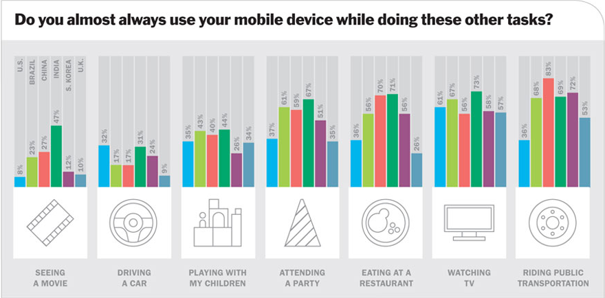 - Pairs who frequently used their mobile devices during conversation had a decreased sense of “interconnectedness,” which was determined by the survey with answers like “I felt close to my conversation partner.”