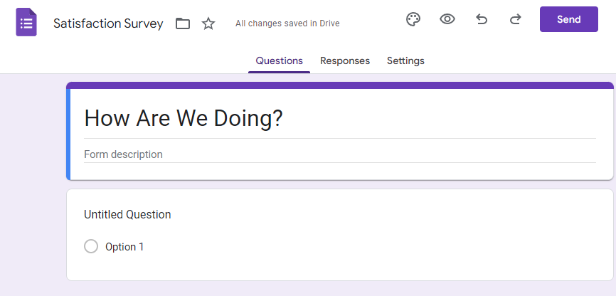 Let’s assume this is meant to be a client satisfaction survey, so we’ll update the document name to “Satisfaction Survey” and call the form “How Are We Doing?”